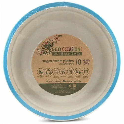 Alpen Sugarcane Dinner Plates 230mm Light Blue 10 Pack Eco Range