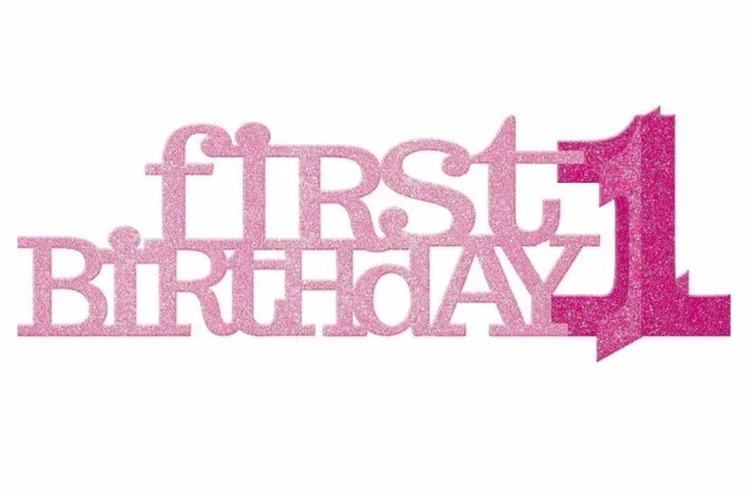 Make your table decorations for your little one’s first birthday sparkle with this decoration! It has the words “First Birthday” in light pink and the number 1 in hot pink and looks great when combined with other pink coloured table decorations.