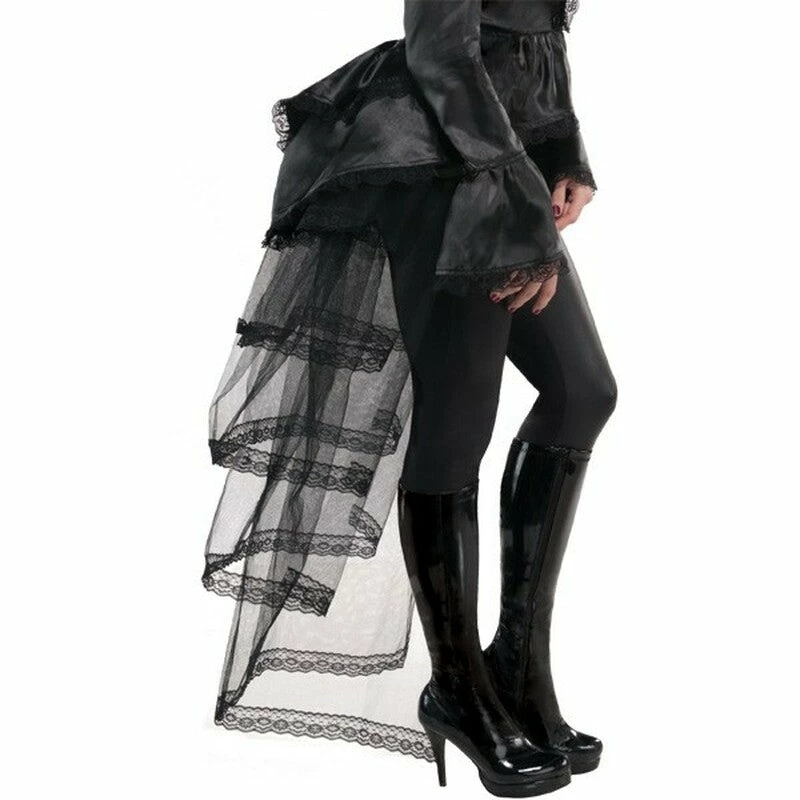 Add a lacy Victorian look to your vampire costume with this Goth Tie On Bustle! This bustle features tiered layers of black tulle with lace trim and a ribbon waist tie. One size fits most.