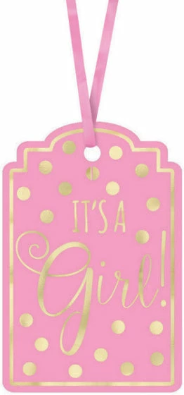 Party Animal Direct Baby Shower FOIL-STAMPED PAPER TAGS IT’S A GIRL – PINK