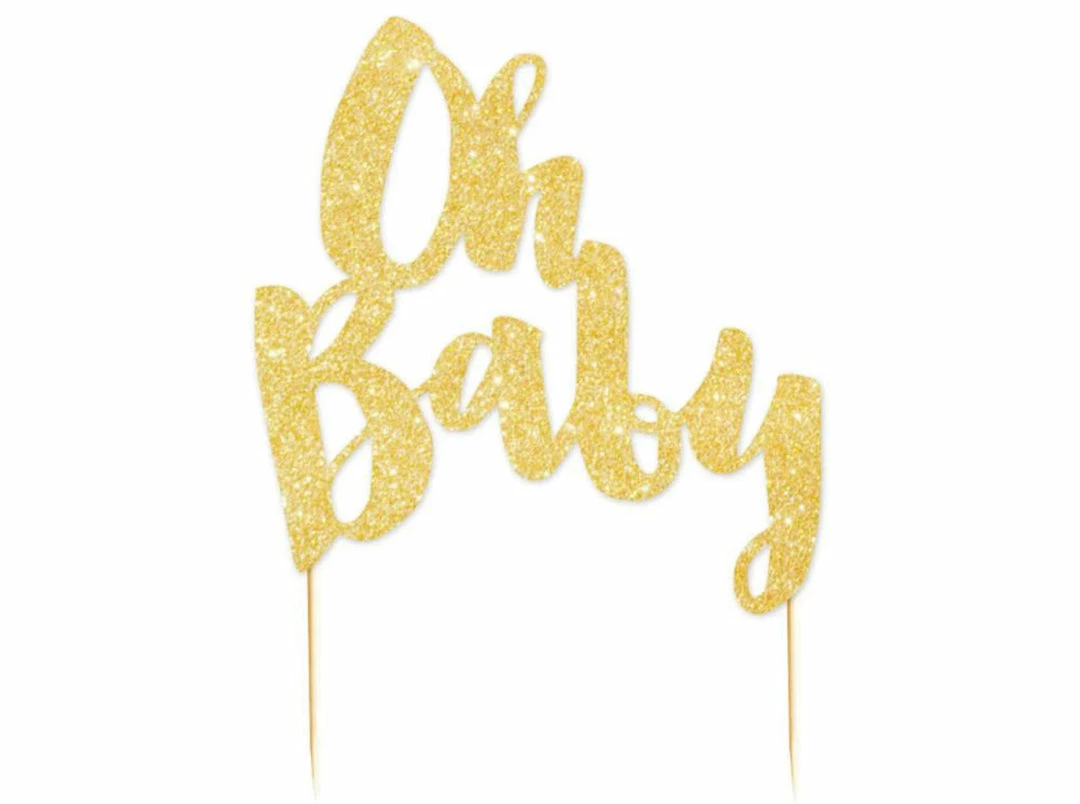 Party Animal Direct Baby Shower GOLD OH BABY GLITTER CAKE TOPPER