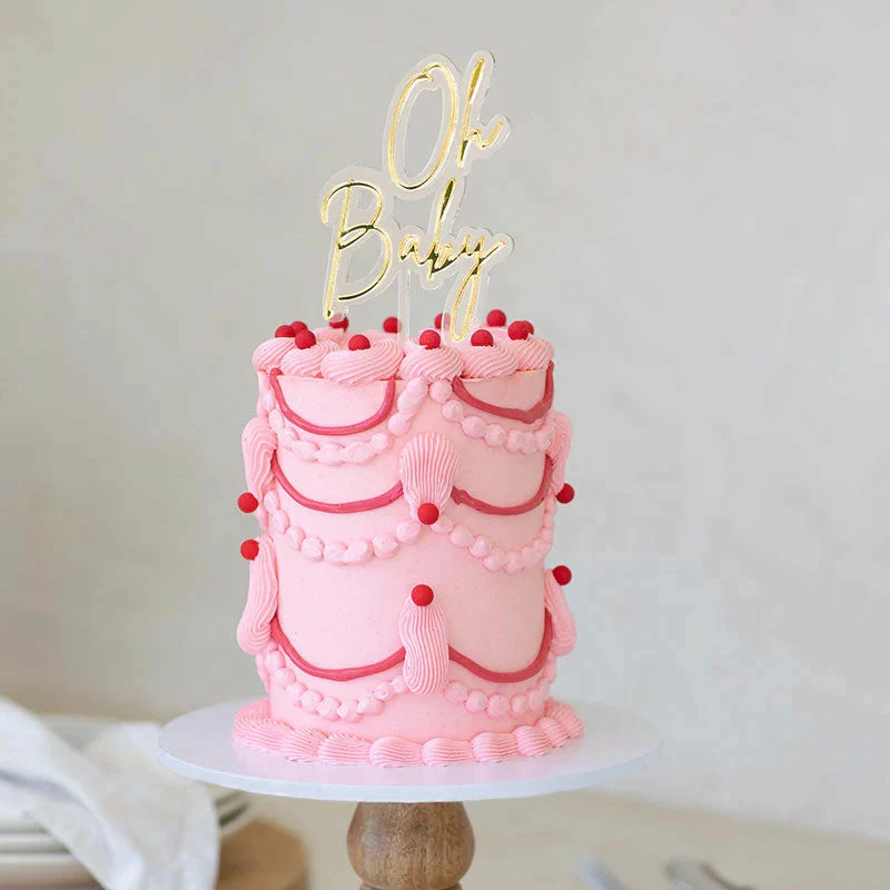 Party Animal Direct Baby Shower OH BABY GOLD & CLEAR ACRYLIC CAKE TOPPER