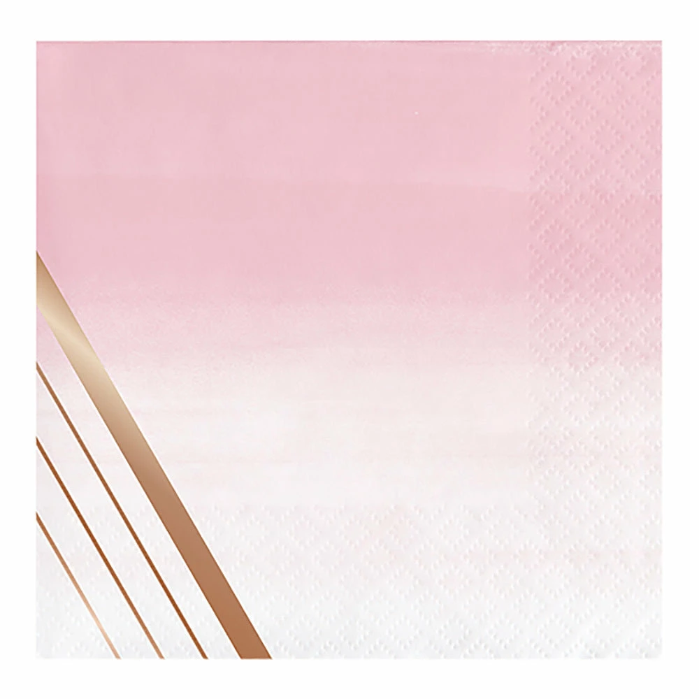 Rose All Day Beverage Napkins Stripes Rose Gold Foil