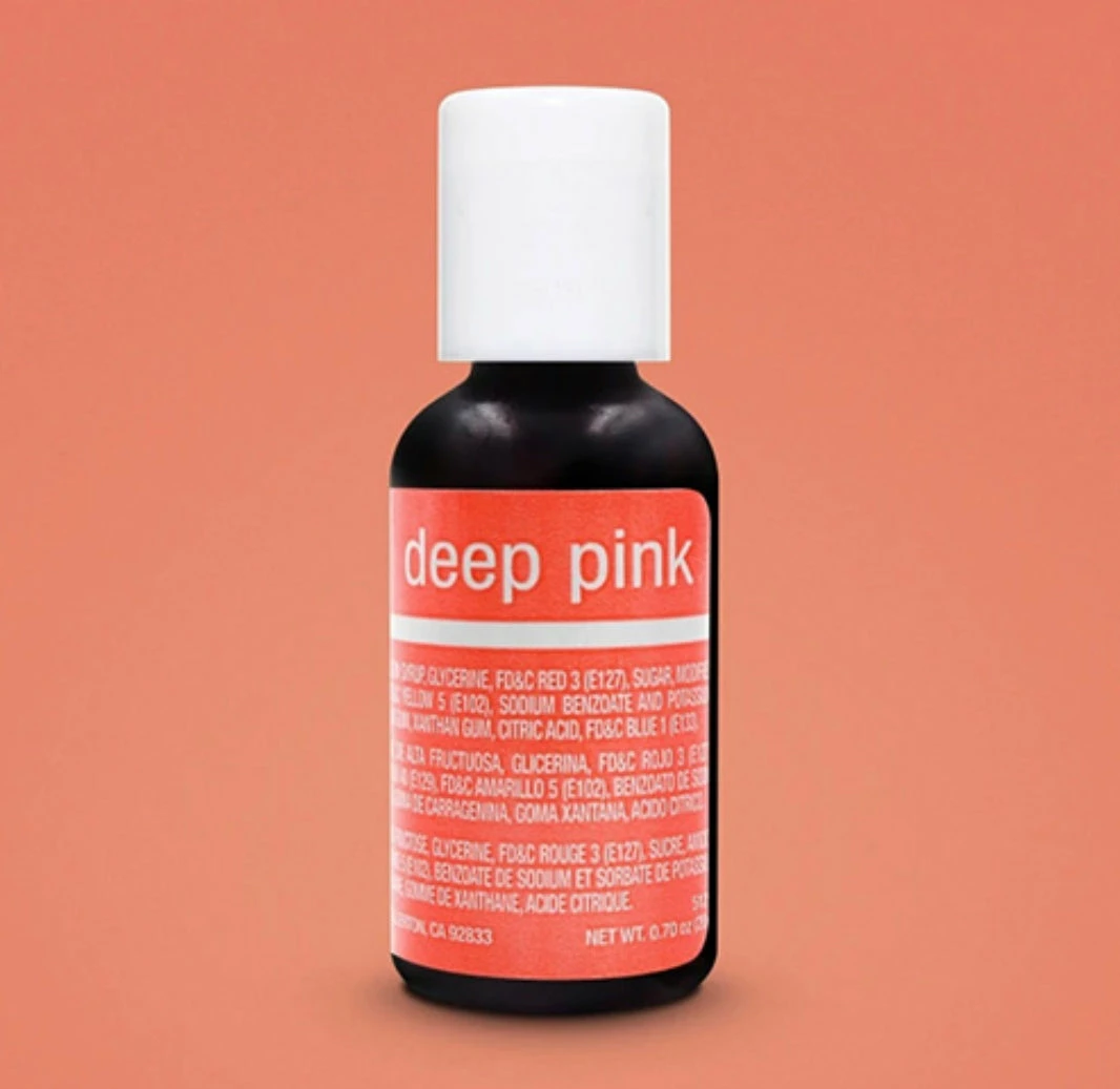 This Chefmaster Liqua-Gel Deep Pink is a highly concentrated, vibrant food colouring that mix easily and provide consistent tones without altering the texturing of your product. Colours are intense, bright and vivid. Easy to mix and disperse instantly. Gels come in 0.7oz (20ml) squeeze bottle with twist-top lids, so you can add drops for easy-to-repeat colors every time. Use in whipped icing, buttercream, fondant, cookies, and more.