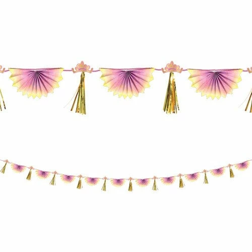 1 x 1.82m long Disney Princess tassel garland, Includes 5 foil tassels, 5 cutouts and 4 paper fans.