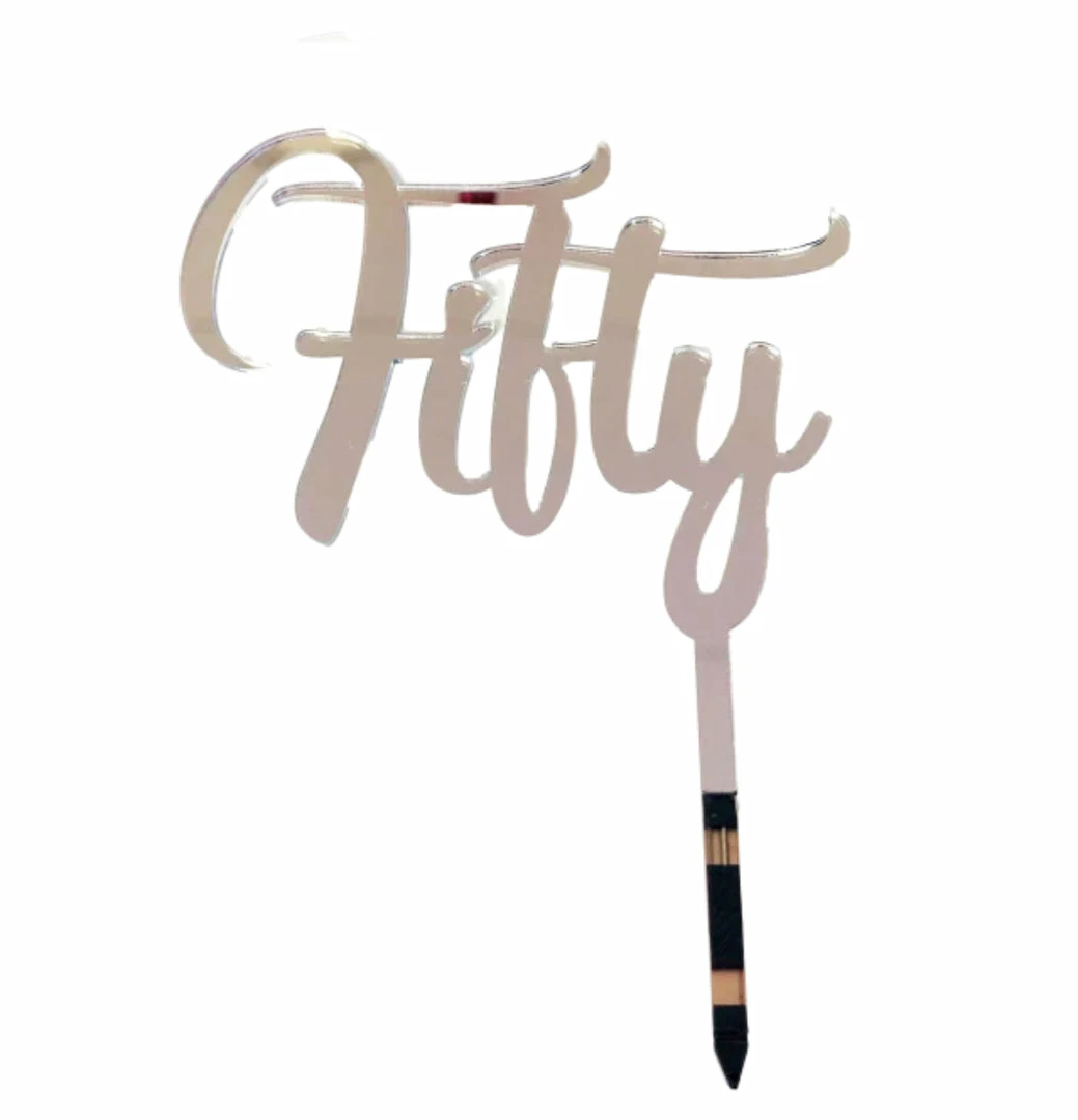 Party Animal Direct FIFTY SILVER ACRYLIC TOPPER 50th Birthday
