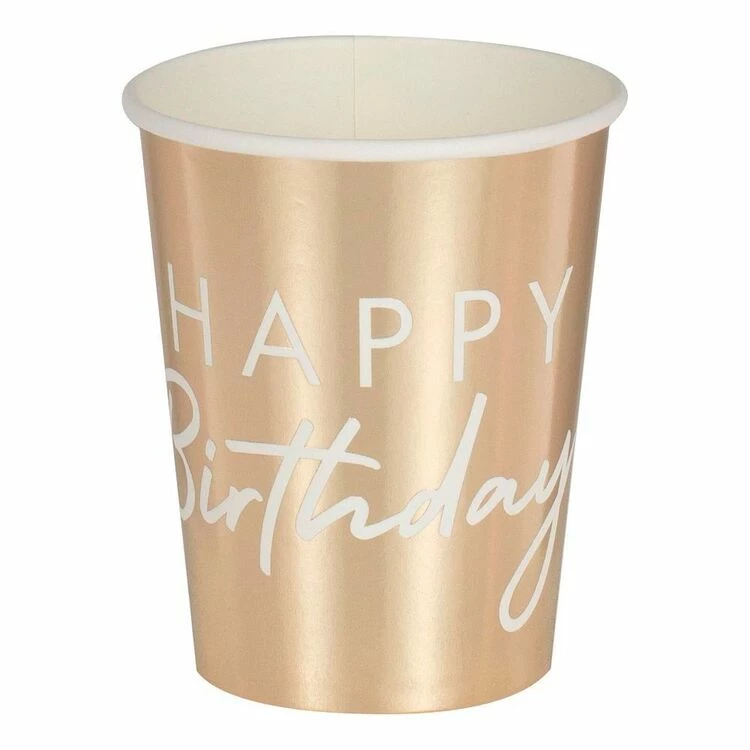 Gold Happy Birthday Mix It Up Paper Cups 10cm x 8cm 8 pk