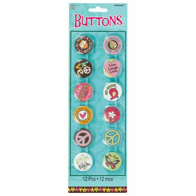 Hippie Chick Buttons Pack of 12 Favours Party Bag Filler Birthday