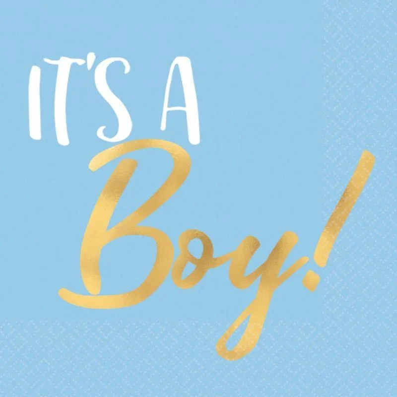 Metallic Gold & Blue It’s a Boy Beverage Napkins product details: