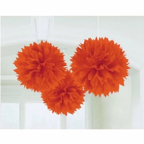 Party Animal Direct ORANGE TISSUE PAPER POM POM BALLS (PACK OF 3)