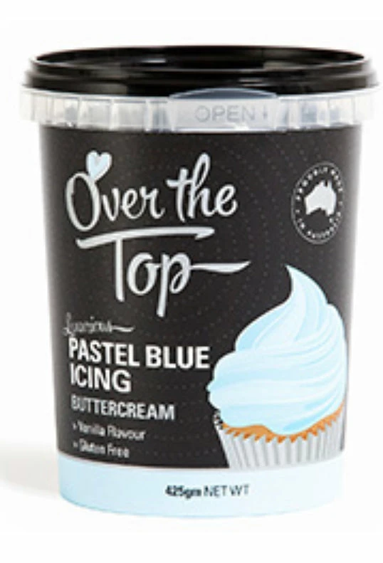 This ready to use vanilla buttercream icing in pastel blue by Over the Top features a silky smooth texture with superior piping consistency. The Over the Top buttercream has a superior crusting buttercream style which is one that will set up firmly enough so that it can be touched lightly without leaving a mark. Crusting buttercream makes a strong base that you can later apply additional designs on.