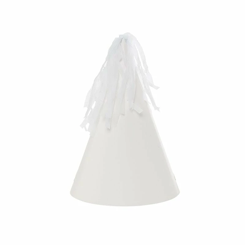 PARTY HAT WITH TASSEL TOPPER WHITE 10PK