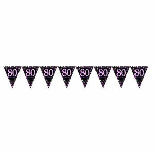 Featuring iridescent pink bubbles on a black background this festive banner will add a sparkling look to your 80th birthday party room! Hang it from your ceiling or pergola and add matching Pink Celebration tableware for a modern and fun 80th birthday setting!