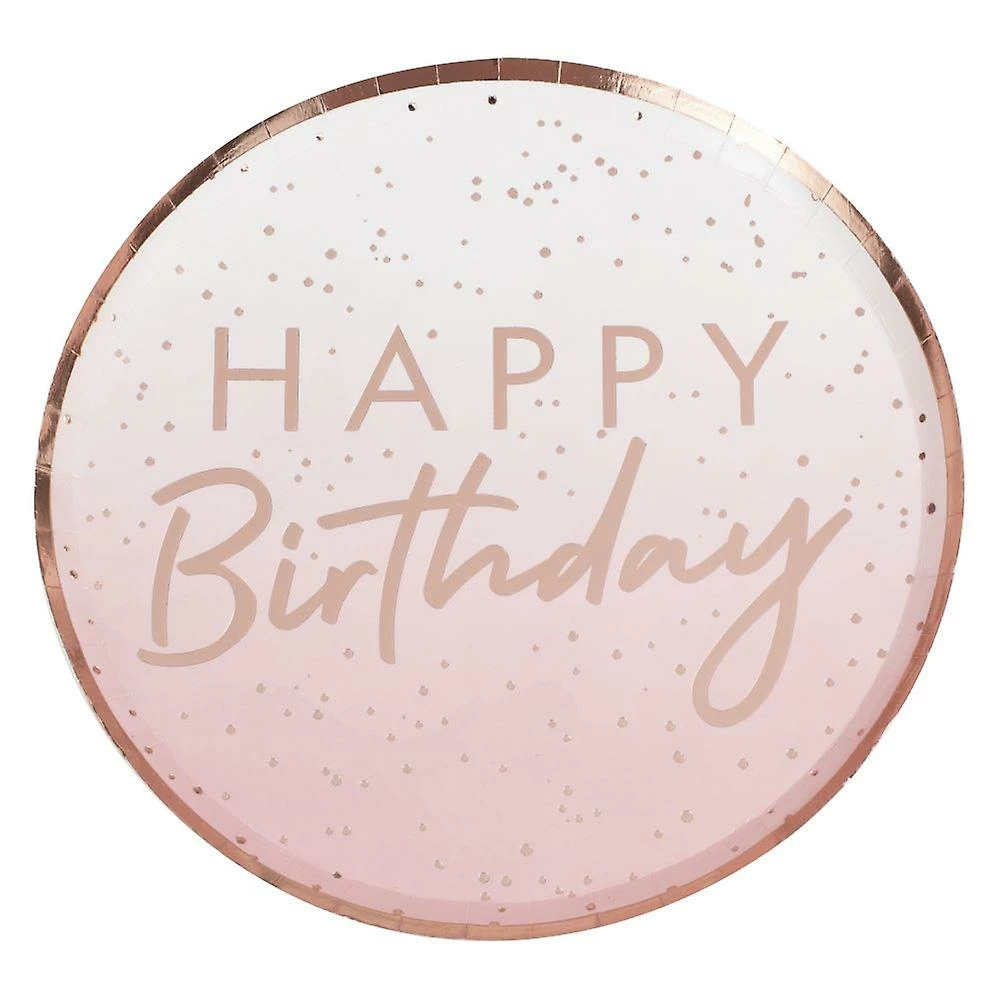Happy Birthday Rose Gold Mix It Up Round Dinner Plates 24cm x 24cm 8 pk