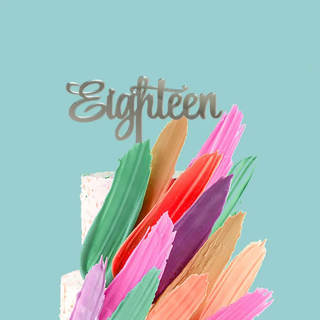 Cake Topper – “Eighteen” Silver Mirror