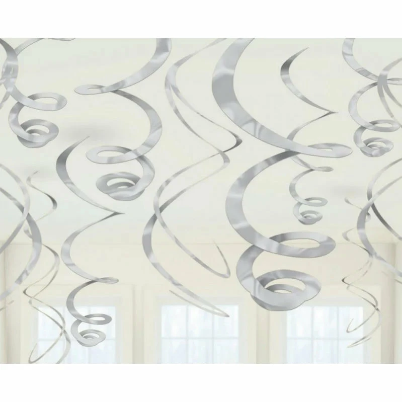 Set a dazzling scene in your party room with our silver hanging swirl decorations!
