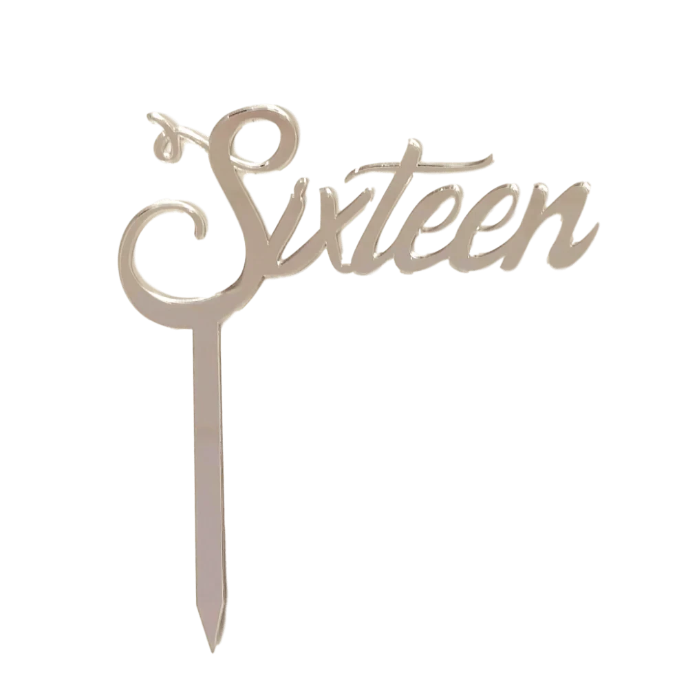 Party Animal Direct SIXTEEN SILVER ACRYLIC TOPPER 16th Birthday