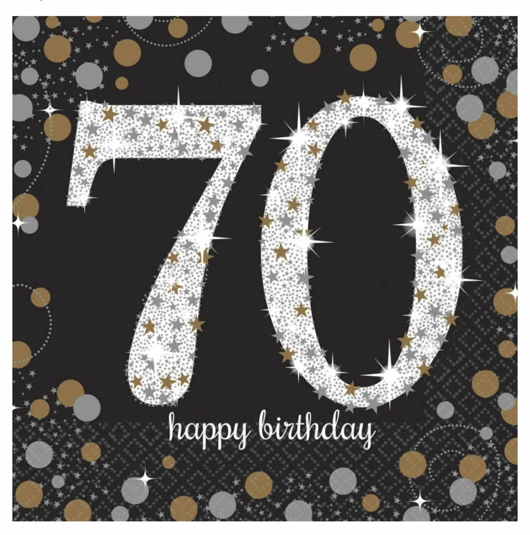 Pack of 16 Sparkling Celebration 70th birthday napkins.