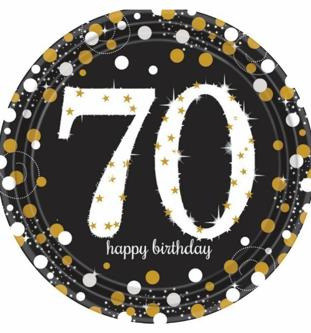 Give your 70th birthday meals a glamorous touch with our Sparkling Celebration 70th Birthday Plates!