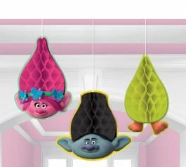 Pack contains 3 Trolls tissue decorations measuring 25.04cm, 21.1cm and 23.77cm.