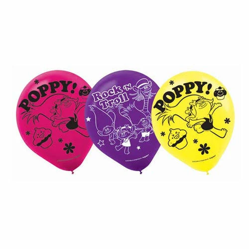Pack of 6 Trolls 30cm Latex Balloon. Size: 30cm. Made of Latex. Sold flat