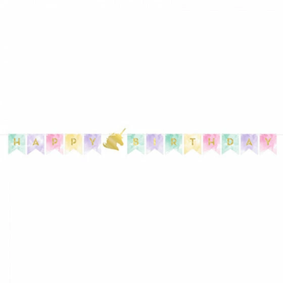 Party Animal Direct UNICORN SPARKLE HAPPY BIRTHDAY STRING BANNER FOIL STAMPED Unicorn Party